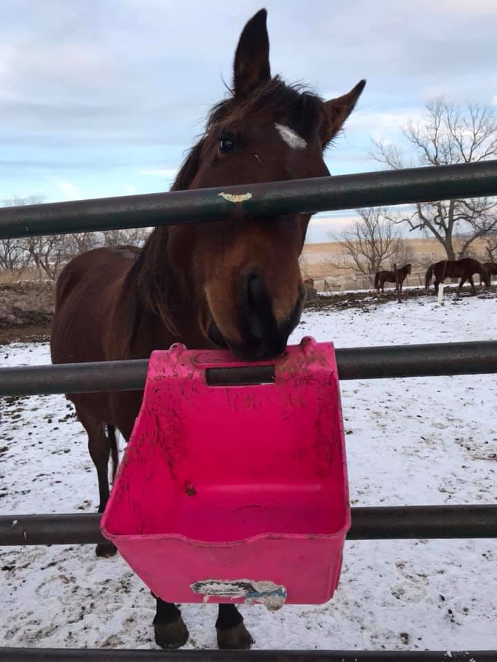 Brego came to Borderlands with his herdmate, Maverick, on a cold October evening. He was thin, tired, and ready for a new lease on life. Brego was the first horse to use the refreeding program at Borderlands. Brego is a soft and timid being that loves to enjoy your quiet company. He’s always “checking in” and making sure you know he’s there with a slight tough of his nose to your arm. Brego is a gentle soul and wants nothing more than to be by your side. Due to an undiagnosed back injury, Brego is not rideable.