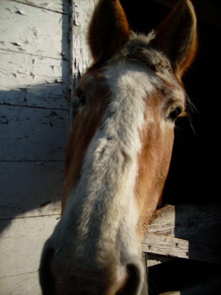 Goofy and loveable Sam came to Borderlands after his owner had a lifestyle change and was required to move. Sam was very much loved in his previous home and spoiled in their care. Prior to that home, there is very little information. In one of his previous careers, he was an Amish horse and had the harness marks to show for it. He took time to warm up to new people and preferred to be rather standoffish. But once he knew you had treats and a loving hug, he was always eager to meet you. As he grew older, Sam required nightly grain and learned from his buddy, Bob, that he would bang on the barn door to insist that he be fed that instant. Big hooves make large dents! Sam loved his grain and made sure to tell everyone, especially if you were even one minute late to feeding.